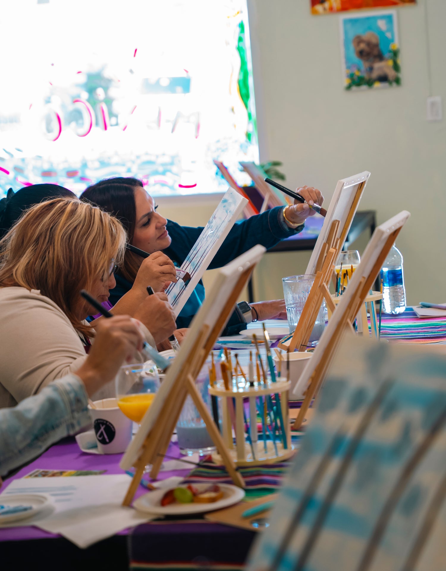🖌 Incluimos todos los materiales necesarios: lienzos, pinceles, pinturas, delantales y más, según el proyecto elegido